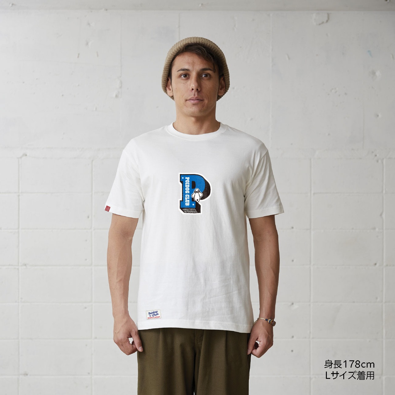 POIDOGの頭文字のデザインTシャツ。