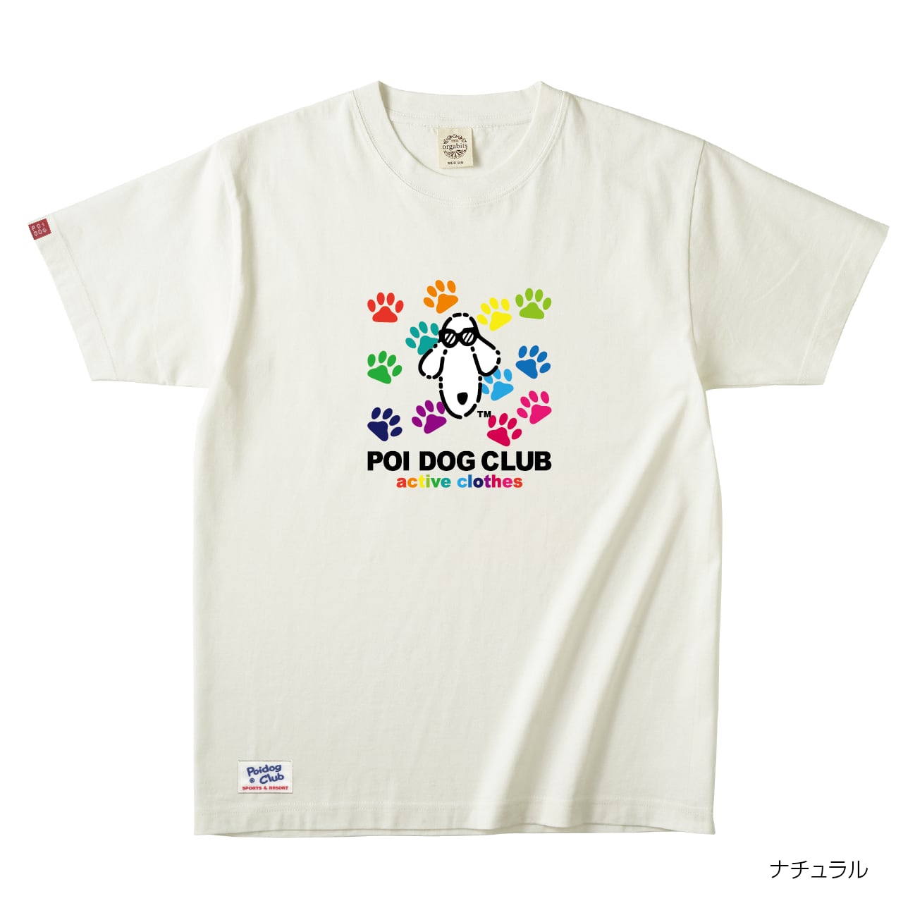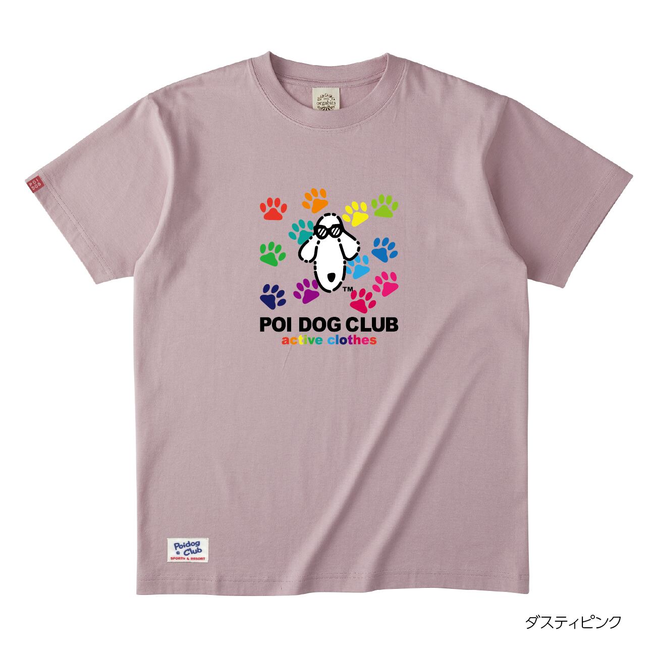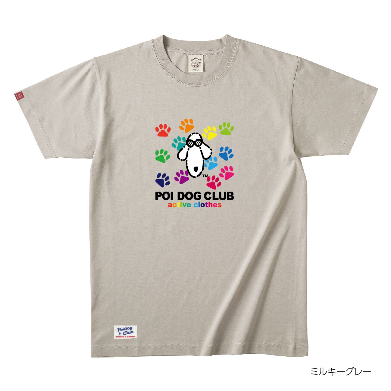復刻版 POIDOGとカラフルな足跡のロゴデザインTシャツ