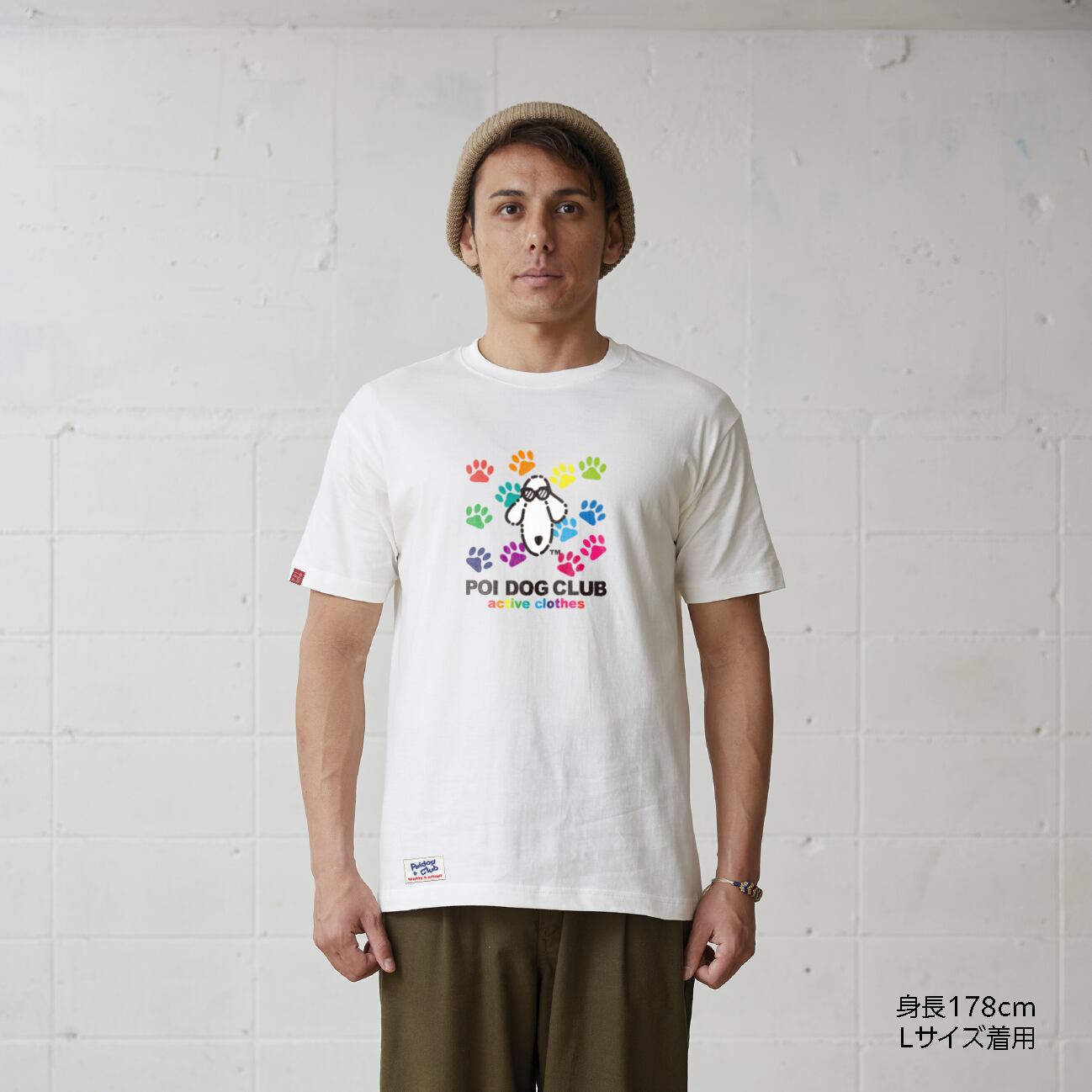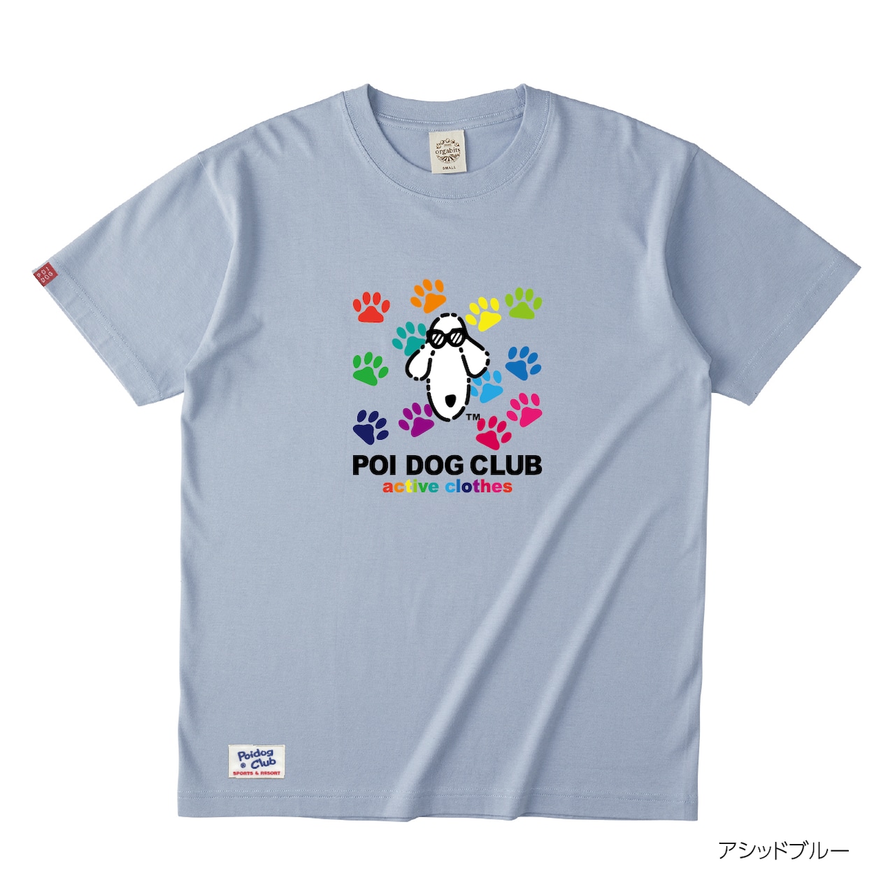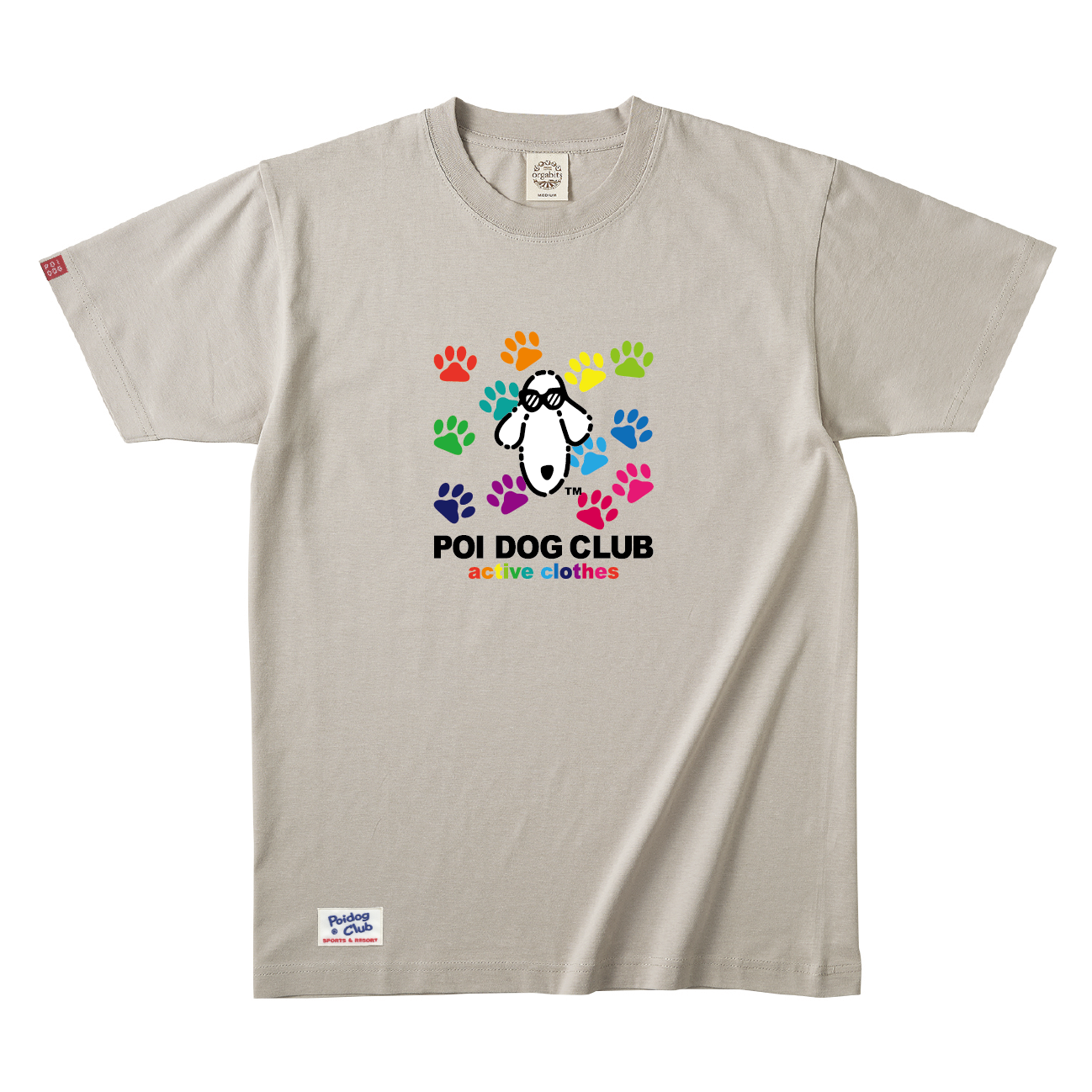 復刻版 POIDOGとカラフルな足跡のロゴデザインTシャツ